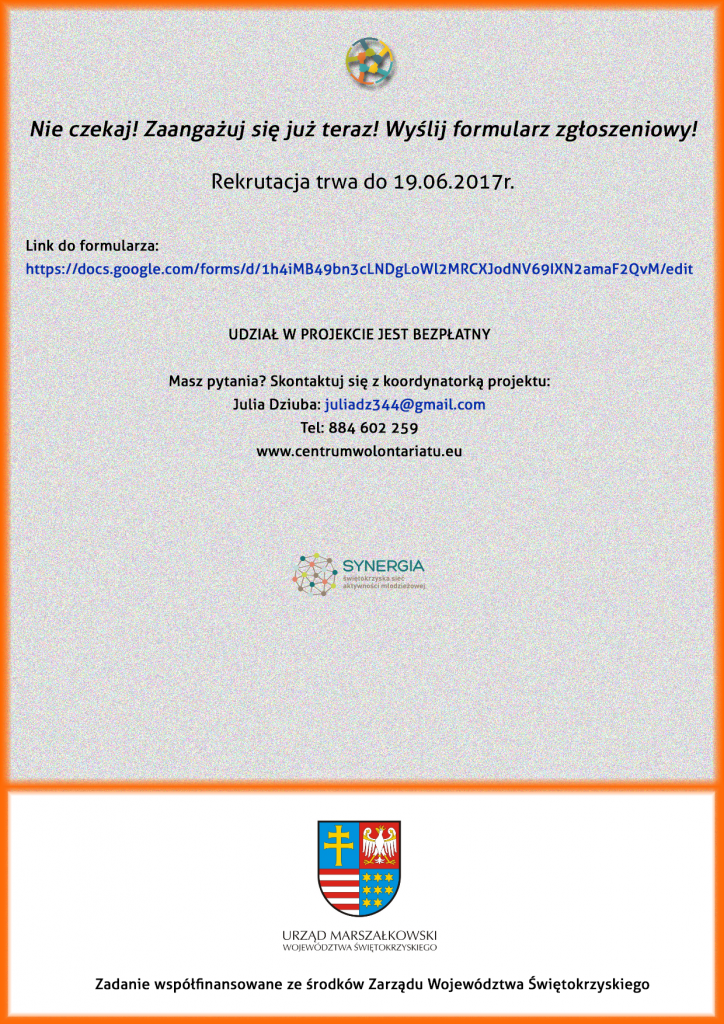 Link do formularza: https://docs.google.com/forms/d/1h4iMB49bn3cLNDgLoWl2MRCXJodNV69IXN2amaF2QvM/edit